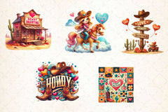 Retro Howdy Western Valentines Day Clipart Bundle 4