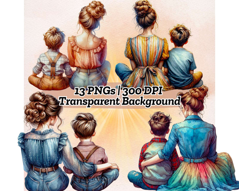 Capture memories with this Retro Mother and Son Clipart, perfect for vintage and family-themed crafts.