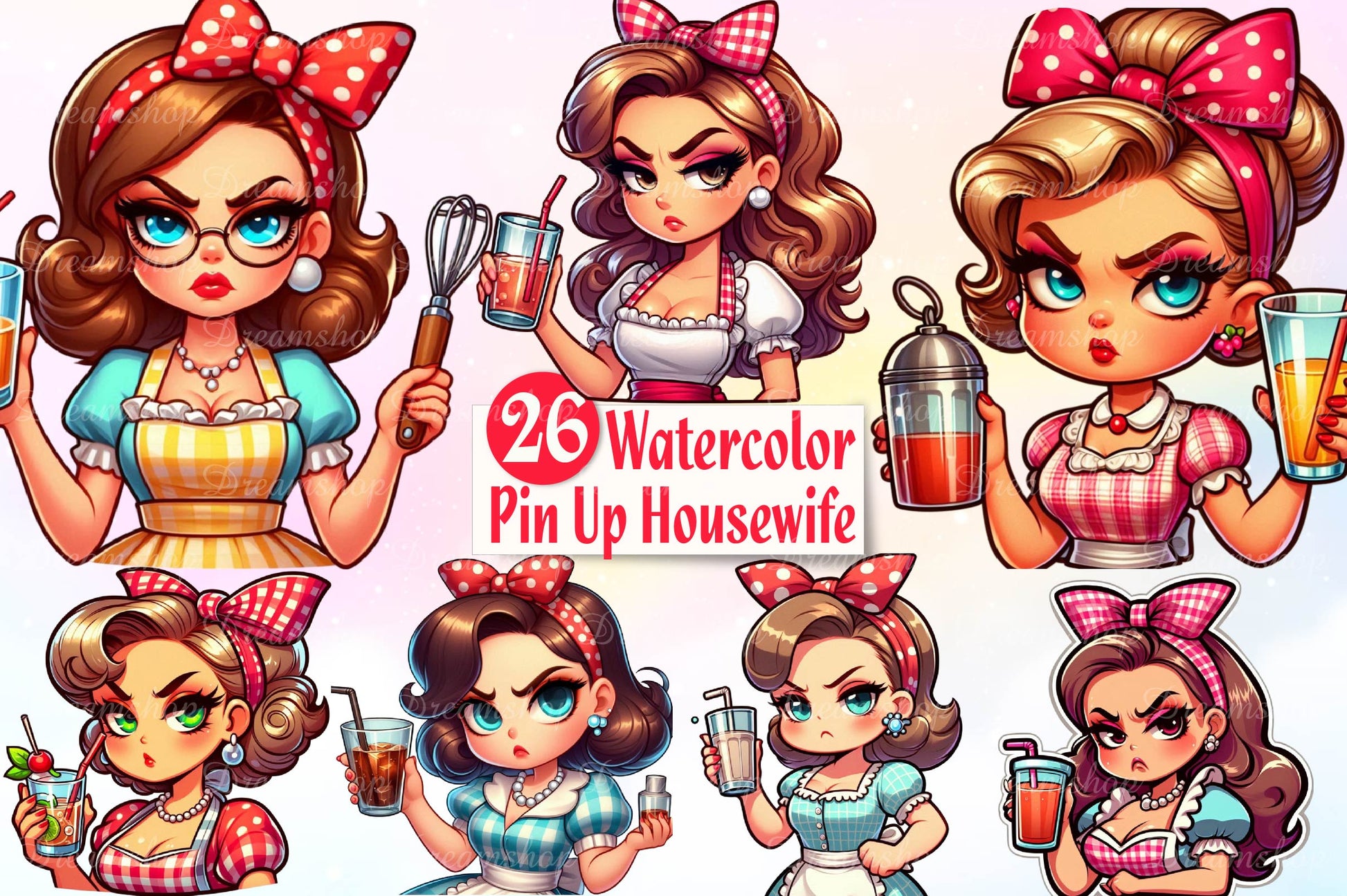 Retro with this Retro Pin Up Housewife Coffee Clipart Bundle, featuring pin-up housewife coffee, ideal for vintage people crafts.