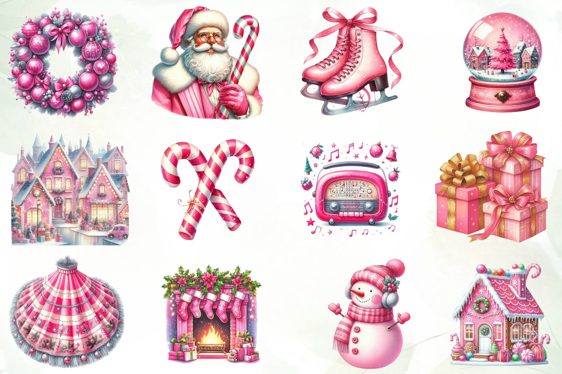 Style with this Retro Pink Christmas Clipart Bundle, featuring vintage pink holiday designs, ideal for colorful Christmas crafts.