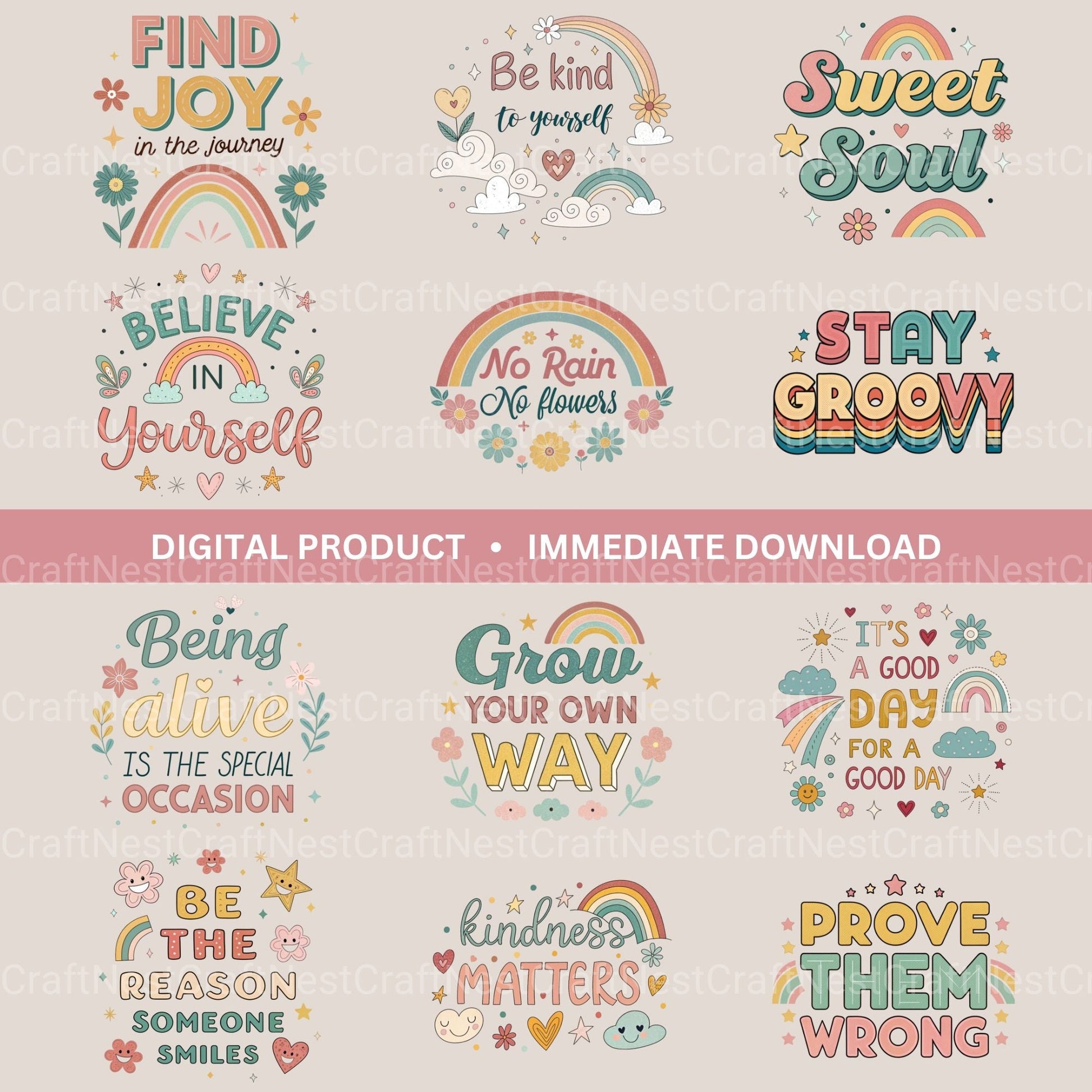 Groove with this Retro Positive Words 12 Clipart Bundle, featuring vintage positive sayings, perfect for retro quote crafts.