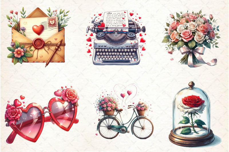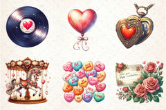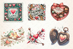 Romance with this Retro Romantic Valentine Clipart Bundle, featuring vintage love designs, ideal for classic Valentine's crafts.