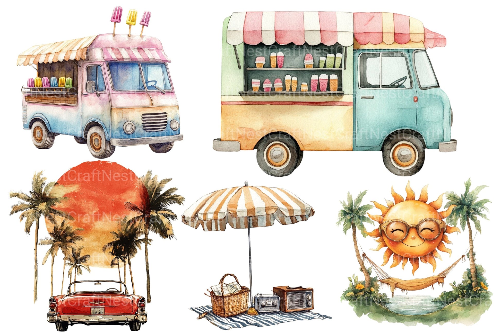 Groove with this Retro Summer Clipart Bundle, featuring vintage summer designs, perfect for nostalgic seasonal crafts.