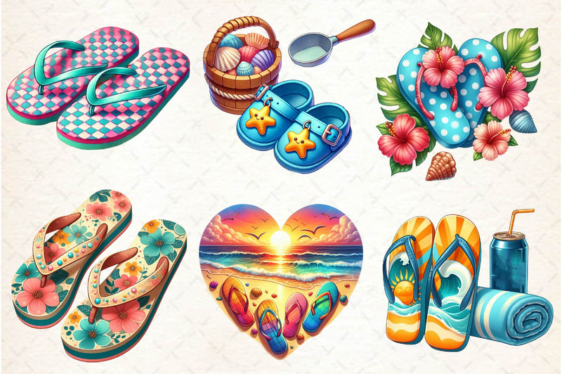 Beach with this Retro Summer Flip Flops Clipart Bundle, featuring retro flip-flops, perfect for vintage summer crafts.