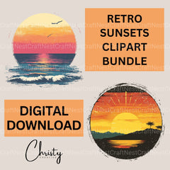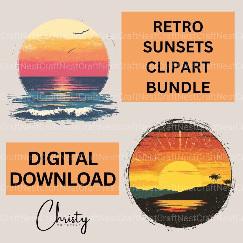 Glow with this Retro Sunsets 2 12 Clipart Bundle, featuring retro sunset designs, ideal for vintage nature crafts.