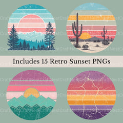 Glow with this Retro Sunsets 3 15 Clipart Bundle, featuring vintage sunset designs, ideal for retro nature crafts.