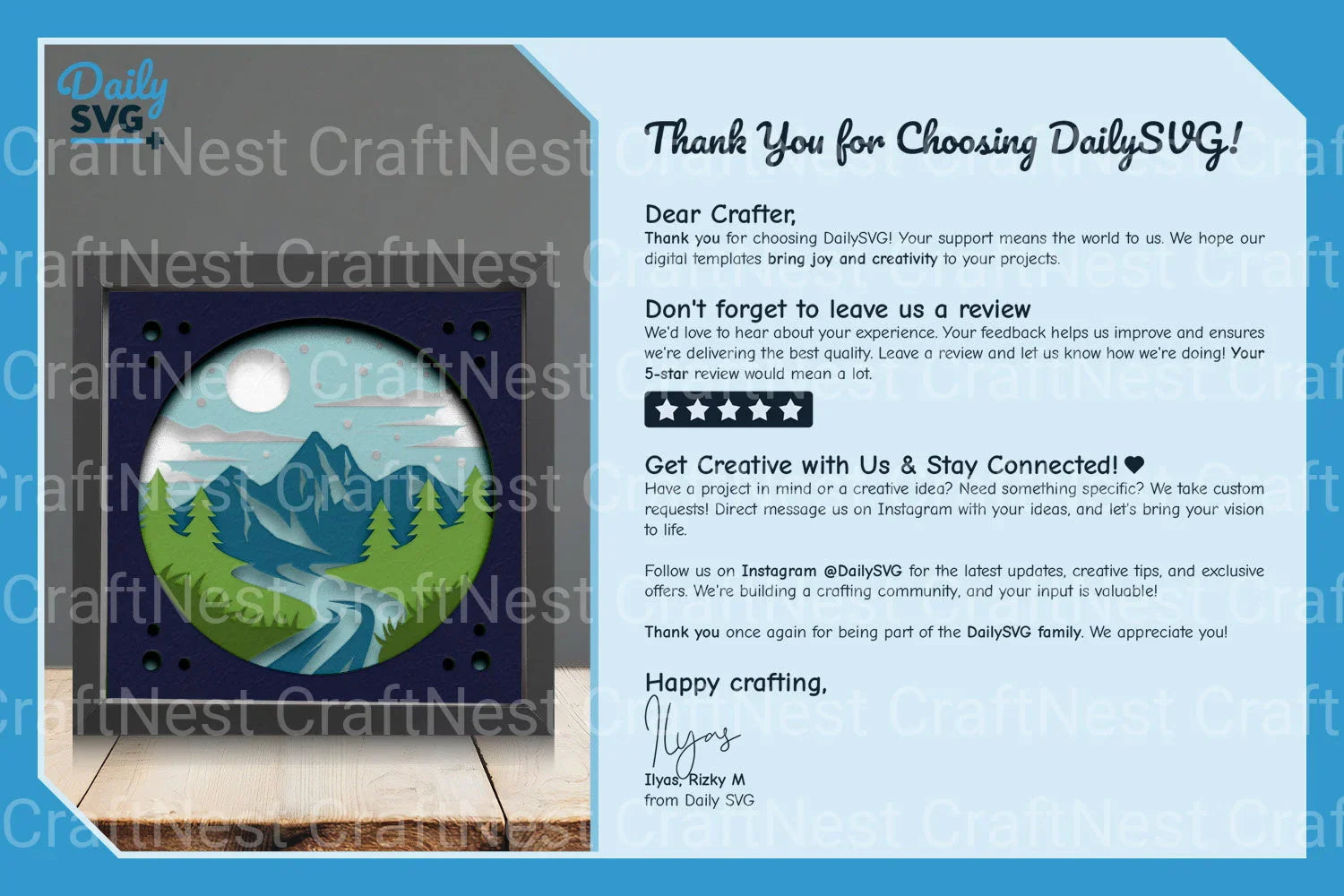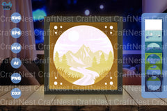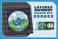 Explore the beauty of nature with the River and Mountain Papercut SVG Bundle, featuring intricate designs perfect for crafting stunning landscapes in your DIY projects.