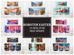 Celebrate Easter in futuristic style with our Roboter Easter digital mug wraps. These sleek designs feature robotic Easter motifs and high-tech patterns, offering a contemporary and avant-garde approach to your holiday celebrations while bringing the excitement of robotics into your morning routine.