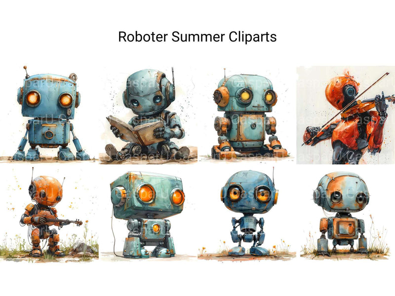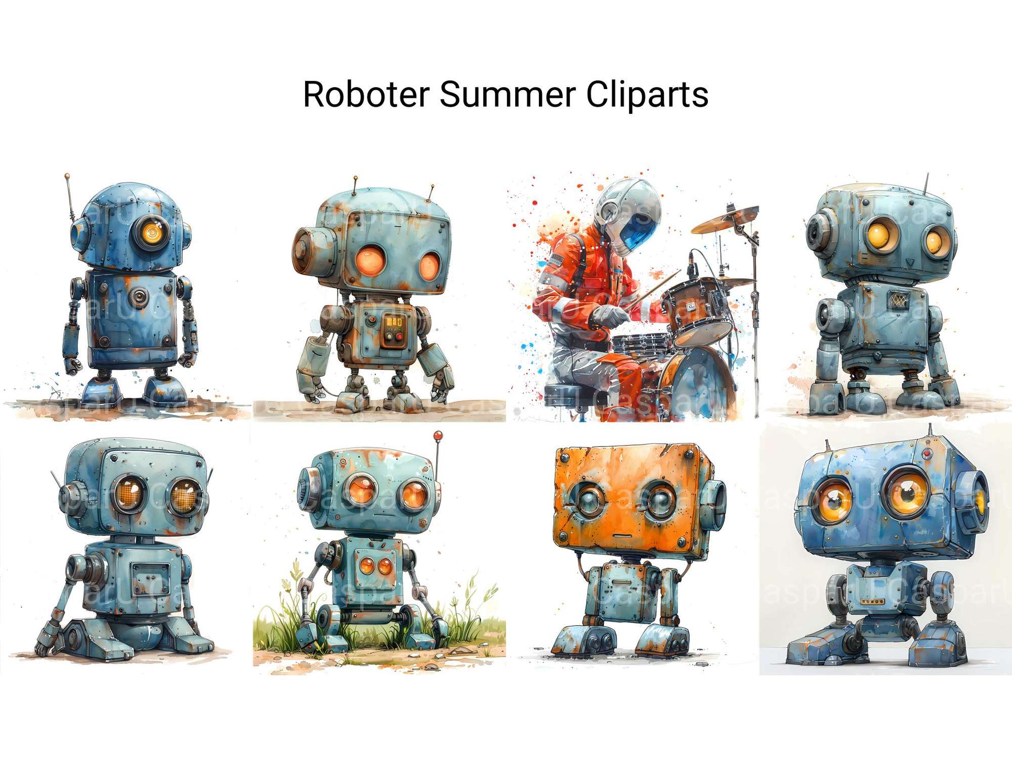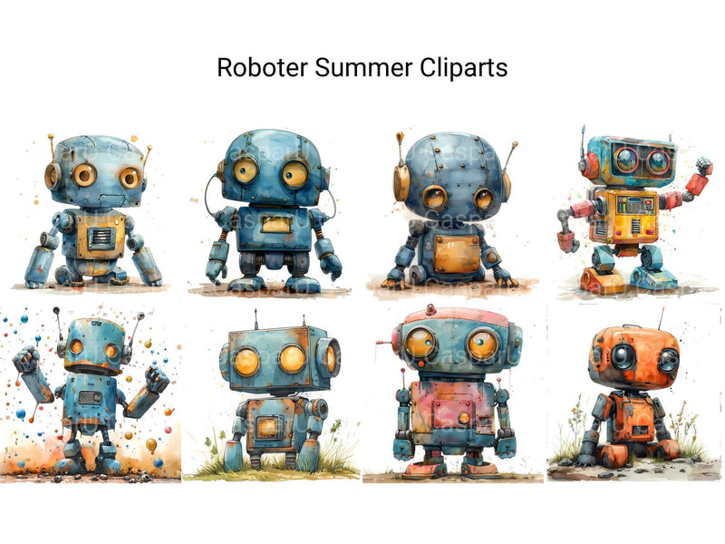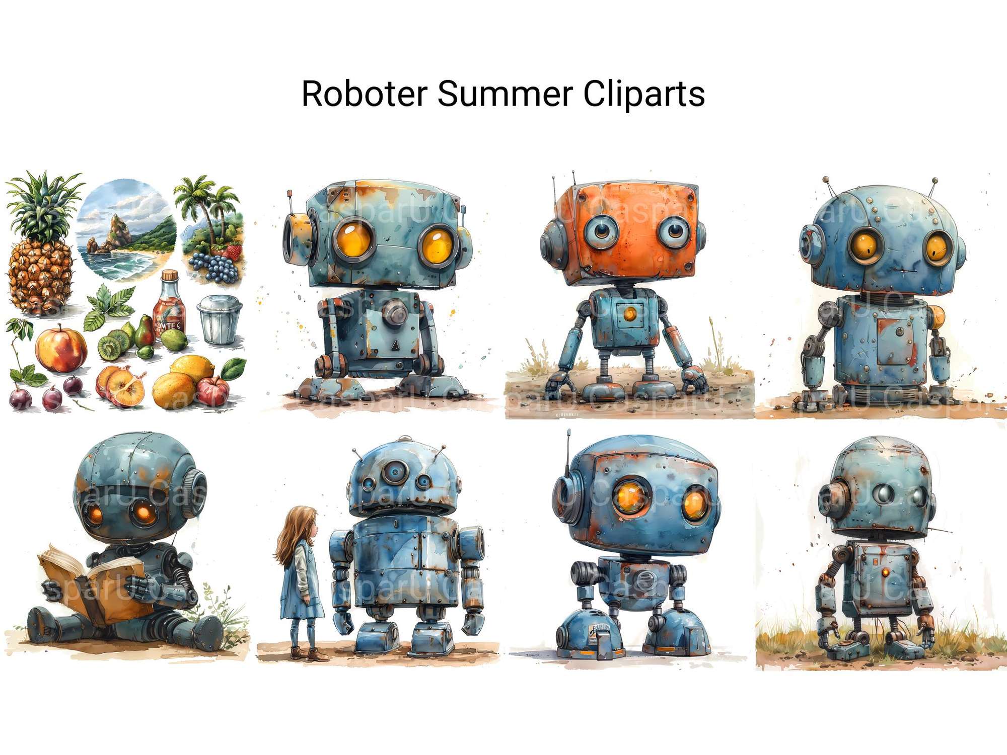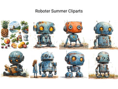 Explore a futuristic world with our Roboter Summer clipart, featuring fun and imaginative illustrations of robots enjoying summer activities. These designs blend technology with summer fun, adding a unique twist to your creative projects.