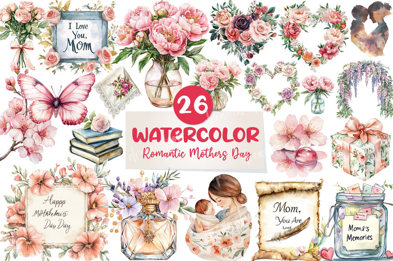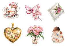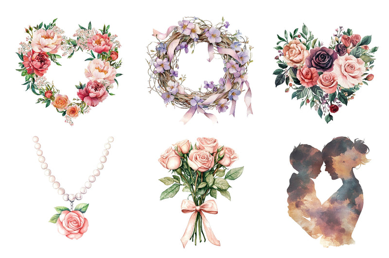 Cherish with this Romantic Mothers Day Clipart Bundle, featuring loving maternal designs, ideal for heartfelt Mother's Day crafts.