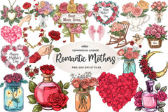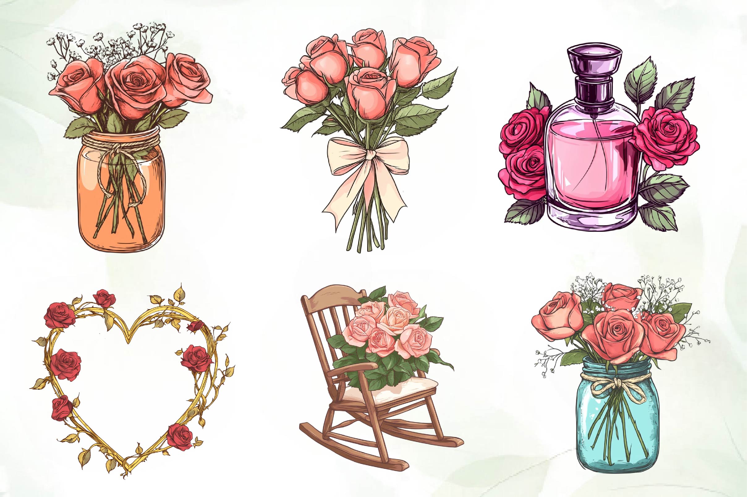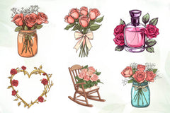 Romance with this Romantic Roses Mothers Day Clipart Bundle, featuring romantic mother roses, perfect for loving maternal crafts.