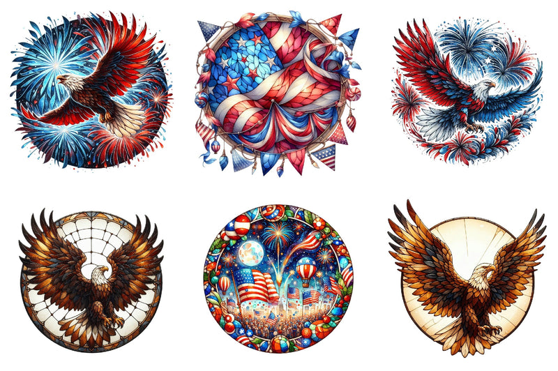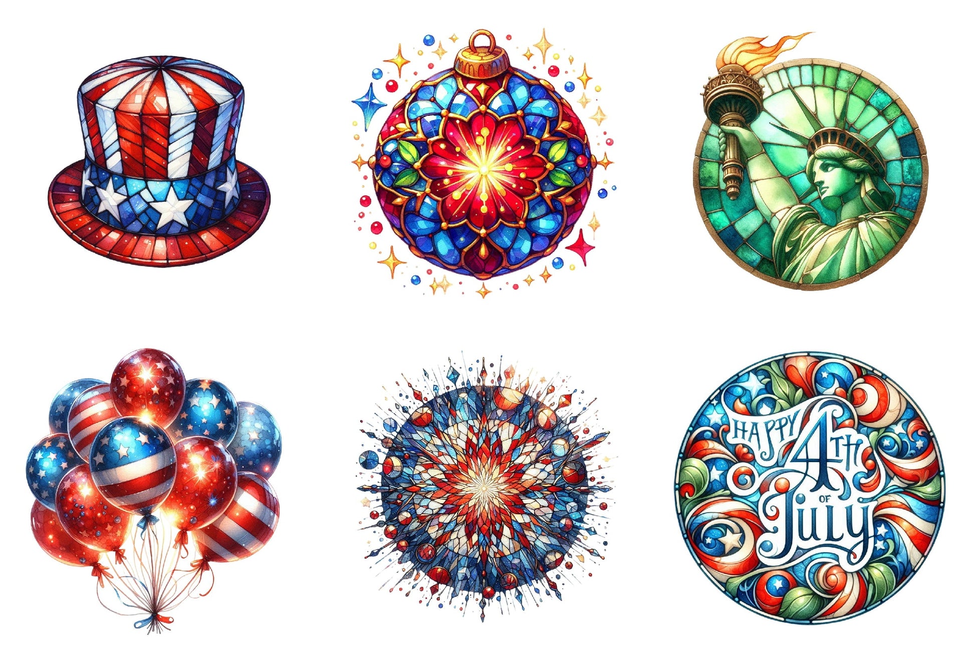 Celebrate Independence Day with our Round Stained Glass 4th of July Clipart Bundle. Perfect for adding a patriotic touch to your crafts, this collection features vibrant, intricate designs that capture the spirit of freedom. Ideal for DIY projects, digital scrapbooking, and festive decorations, these high-quality clipart images are a must-have for any creative enthusiast. Transform your projects with unique, eye-catching stained glass effects that stand out. Download now and let your creativity shine this 4th of July!
