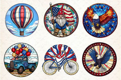 Round Stained Glass 4th Of July Clipart Bundle 3