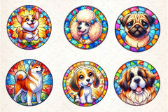 Beautiful round stained glass dog designs for artistic pet projects.
