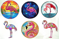 Strut with this Round Stained Glass Flamingo Clipart Bundle, featuring artistic flamingo designs, perfect for stained glass bird crafts.