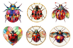 Circle with this Round Stained Glass Ladybug Clipart Bundle, featuring artistic ladybug designs, perfect for decorative nature crafts.