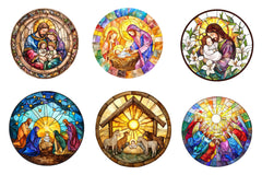 Holy with this Round Stained Glass Nativity Clipart Bundle, featuring artistic nativity designs, perfect for religious Christmas crafts.