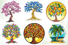 Grow with this Round Stained Glass Tree Clipart Bundle, featuring artistic tree designs, perfect for stained glass nature crafts.