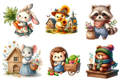 Dwell with this Rustic Animal Villagers Collection Clipart Bundle, featuring countryside animal designs, perfect for village animal crafts.
