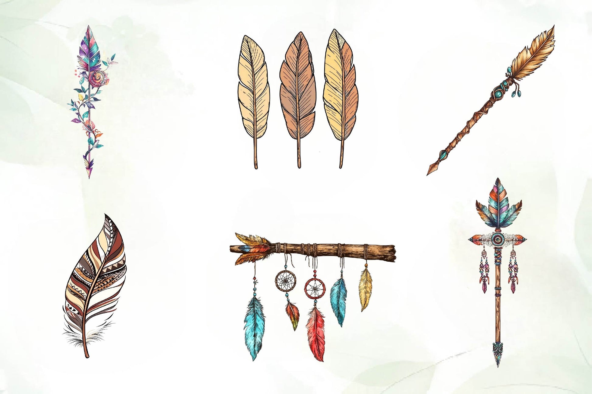 Tribal with this Rustic Boho Feathers & Arrows Clipart Bundle, featuring boho feather designs, ideal for bohemian nature crafts.
