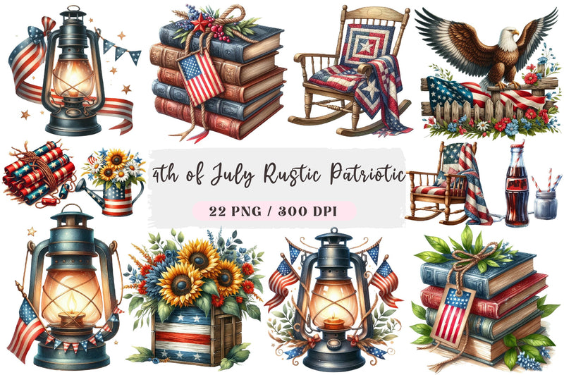 Celebrate Independence Day with our Rustic Patriotic Clipart Bundle, perfect for adding a vintage charm to your 4th of July projects. This collection features classic American symbols with a rustic twist, ideal for DIY crafts, party invitations, and home decor. Unleash your creativity with these high-quality, versatile designs that capture the spirit of patriotism. Perfect for crafters, designers, and anyone looking to infuse their projects with a touch of Americana. Make your celebrations memorable with this unique clipart set!