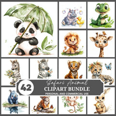 Explore the wild with this Safari Animals Clipart set, featuring diverse animal designs, ideal for safari-inspired projects.