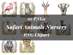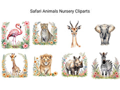 Create a wild nursery with this Safari Animals Nursery Clipart set, featuring cute safari animals, ideal for baby-themed decor.