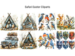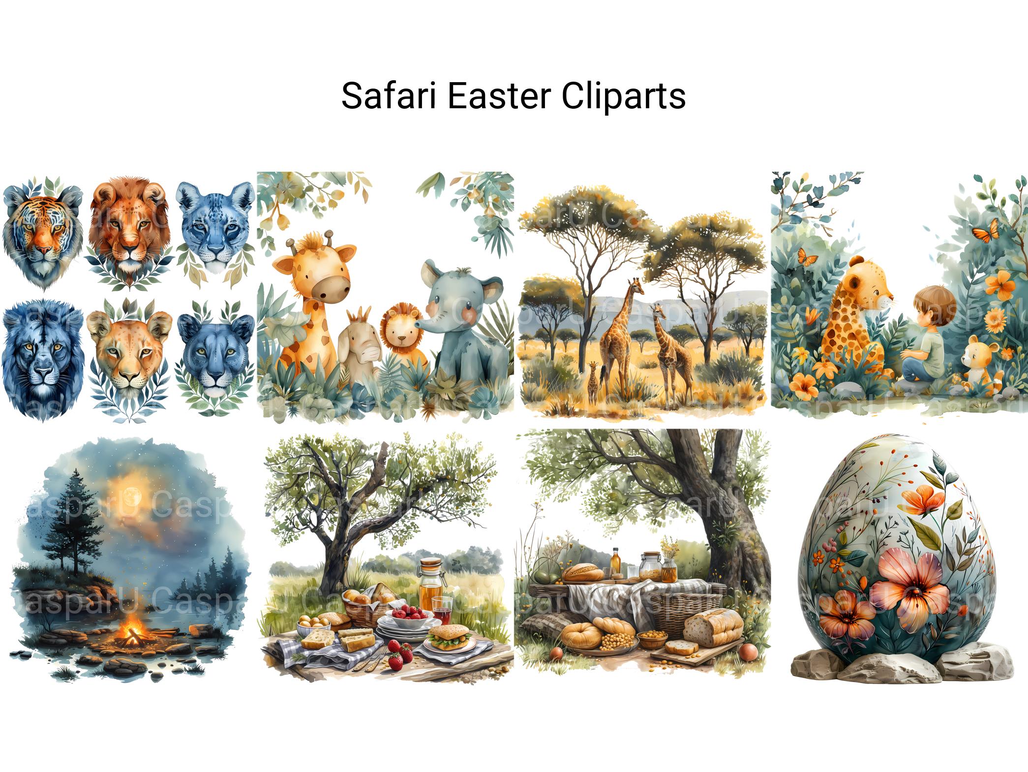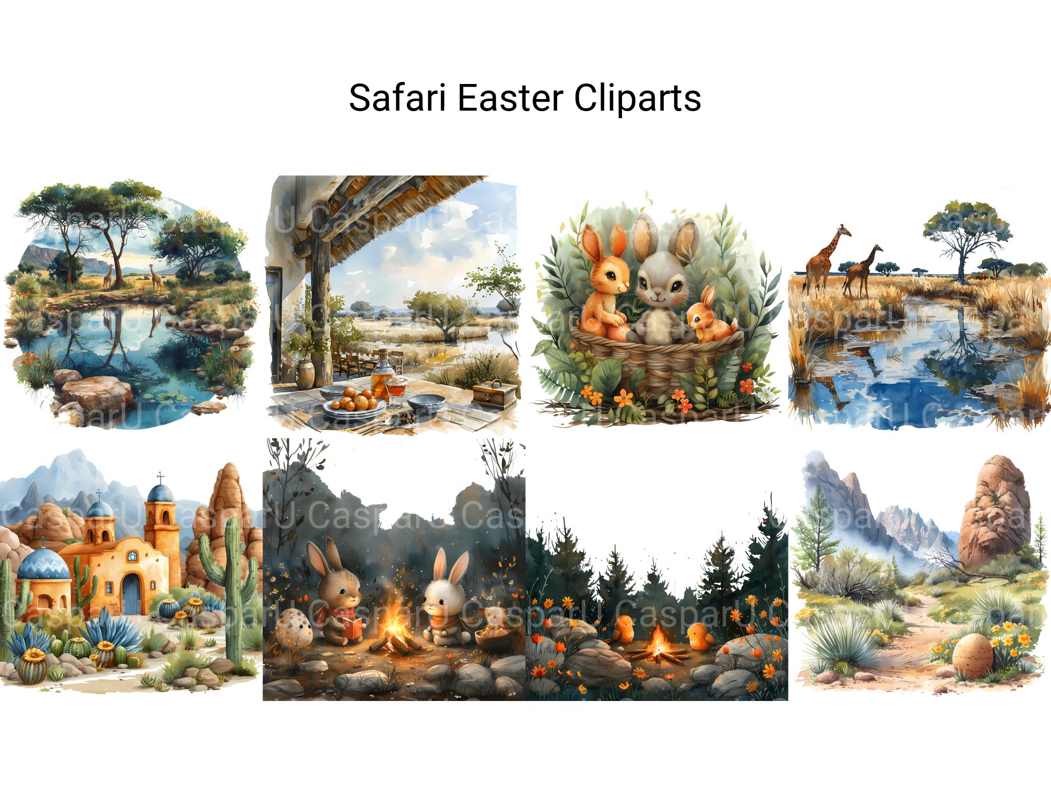 Embark on a wild Easter adventure with Safari Easter digital clip art, featuring safari-inspired illustrations, exotic animals, and lush landscapes that capture the spirit of the African Savannah. These adventurous images infuse Easter with a sense of safari chic and exotic charm, perfect for adding a touch of adventure to your projects. Let Safari Easter whisk you away on a safari expedition, inviting viewers to explore the untamed beauty of the wilderness this Easter.