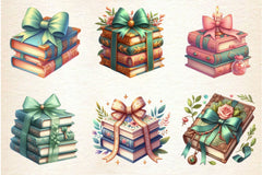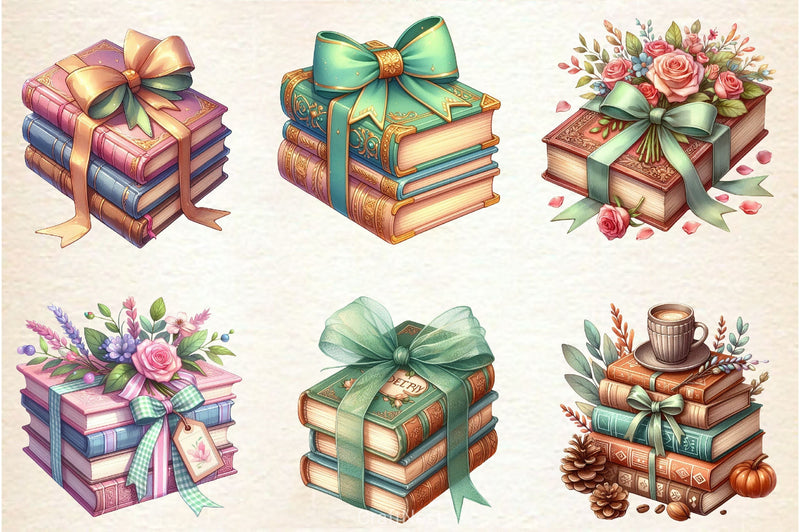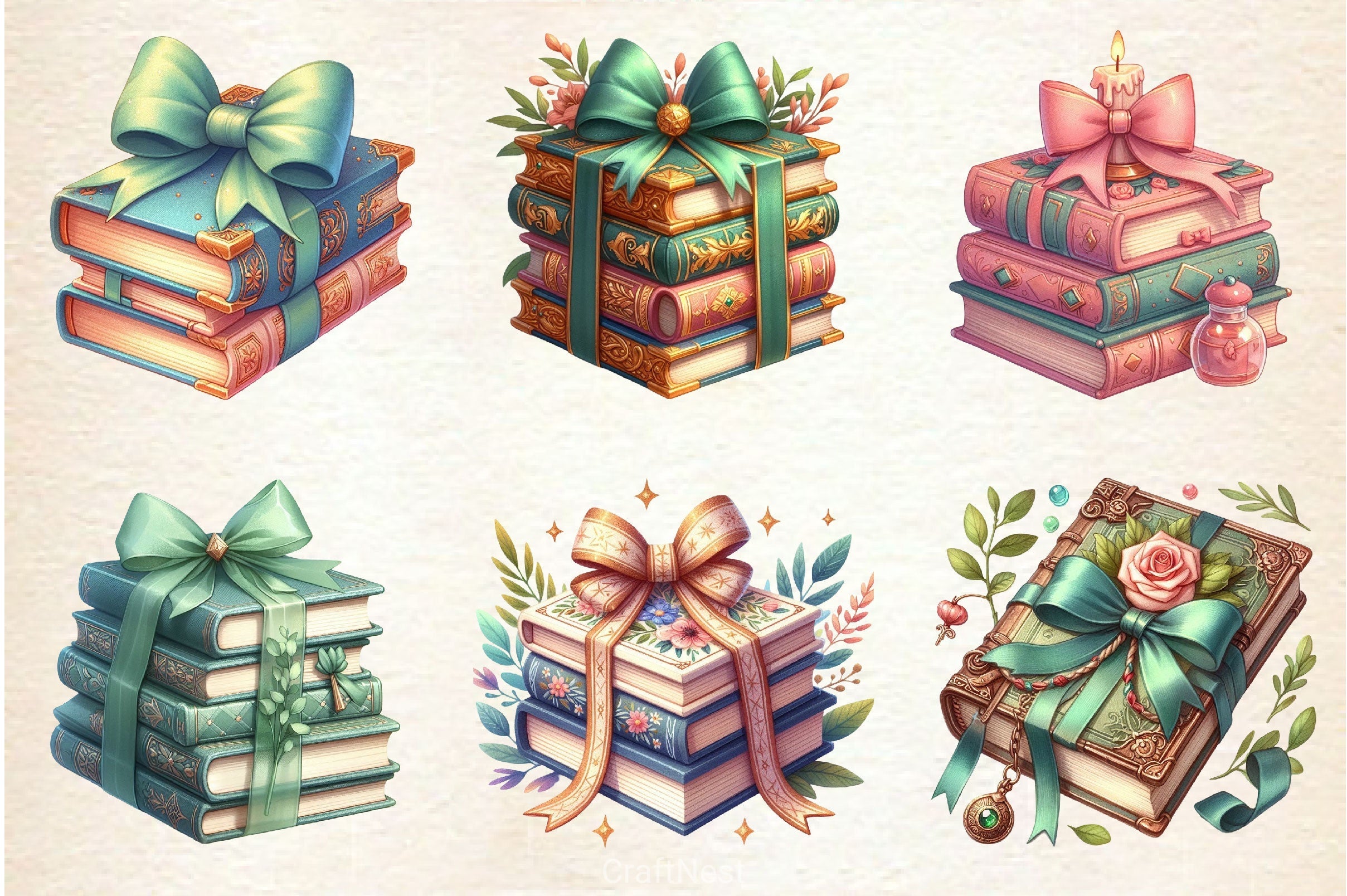 Study with this Sage Coquette Bow Book Stack Clipart Bundle, featuring girly literature designs, perfect for feminine reading crafts.