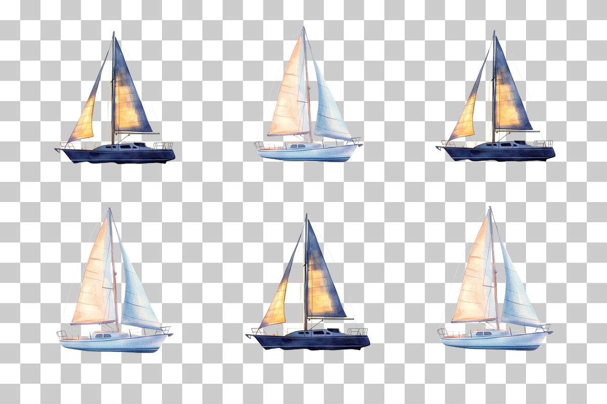 Sailboat at Dawn Nautical Scene Clipart Bundle