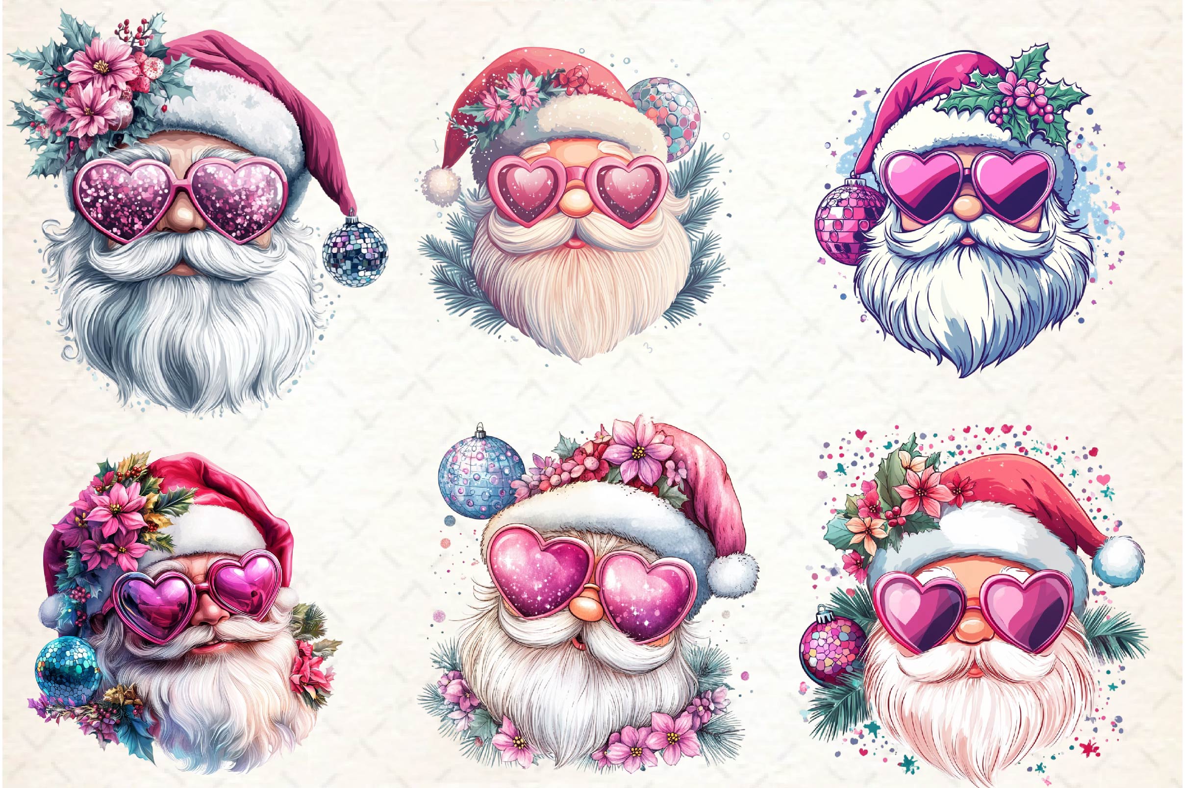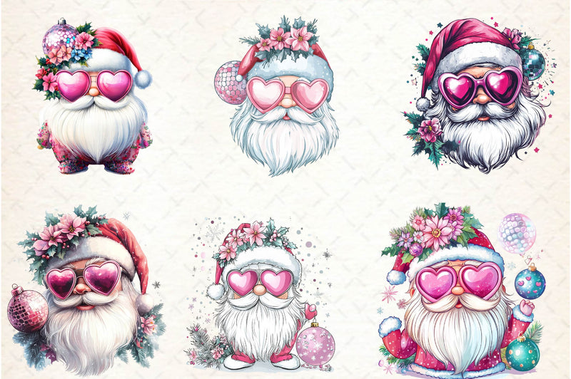 Santa Claus Retro Pink Christmas Clipart Bundle