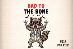 Unleash your creativity with the Sarcastic Halloween Skeleton Raccoon Clipart Bundle, featuring quirky raccoon designs perfect for spooky and humorous Halloween projects.