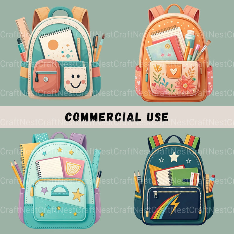 School Backpacks Clipart Bundle