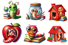 Study with this School Bookworm Clipart Bundle, featuring studious designs, perfect for educational back to school crafts.