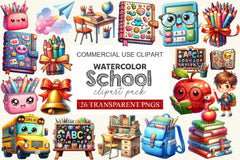 Enhance your educational projects with our School Clipart Bundle, featuring vibrant and versatile designs perfect for classroom decor, lesson plans, and creative teaching resources.