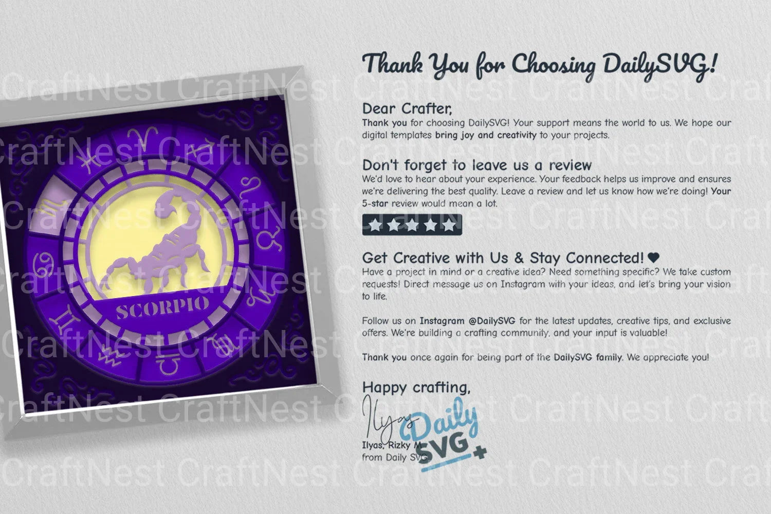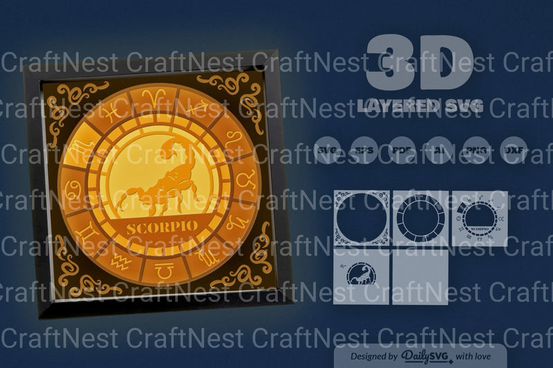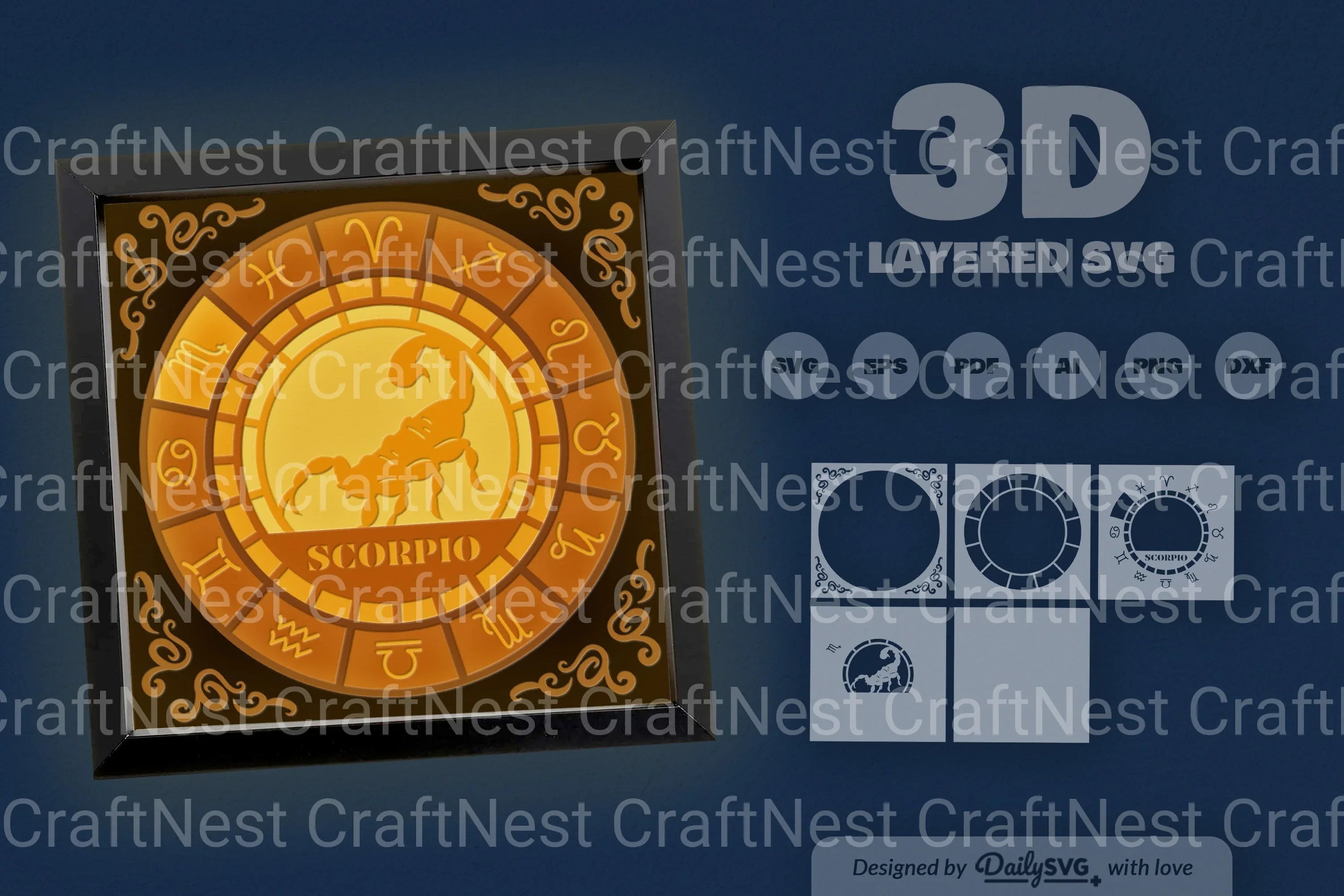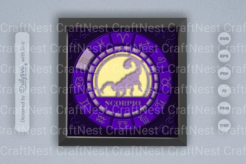 Unveil the mystique of the cosmos with the Scorpio Zodiac 3D Shadow Box Papercut SVG Bundle. Perfect for astrology enthusiasts, this intricate design captures the essence of Scorpio, making it ideal for personalized gifts, home decor, and unique craft projects. Elevate your creative endeavors with this captivating papercut masterpiece.