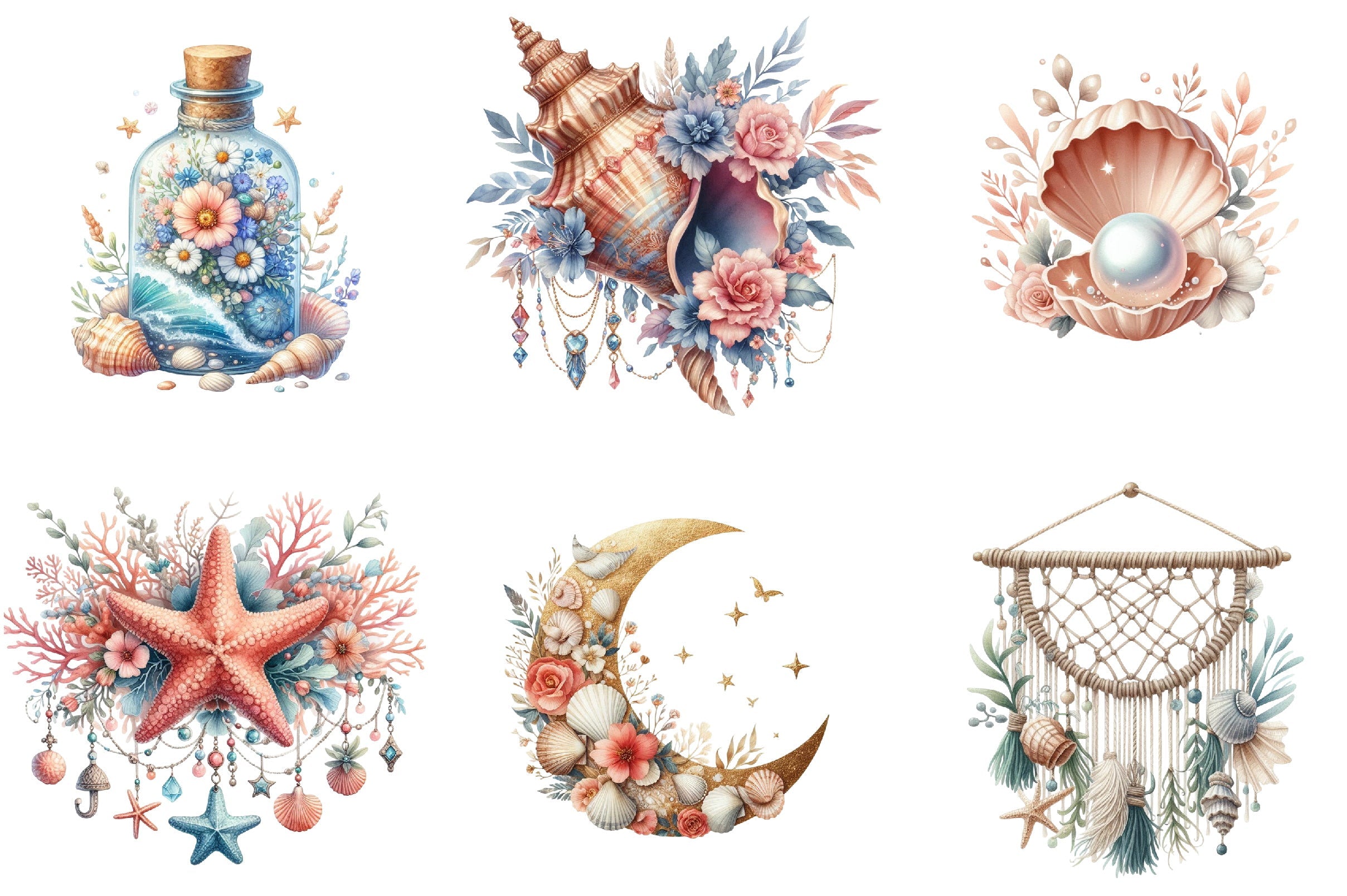 Immerse yourself in creativity with the Sea Ocean Boho Clipart Bundle, featuring stunning ocean-themed designs perfect for bohemian-inspired projects. Ideal for digital scrapbooking, invitations, and home decor, this collection brings the serene beauty of the sea to your fingertips. Transform your crafts with unique watercolor elements, seashells, and marine life illustrations. Perfect for artists, designers, and DIY enthusiasts looking to add a touch of coastal charm to their creations.