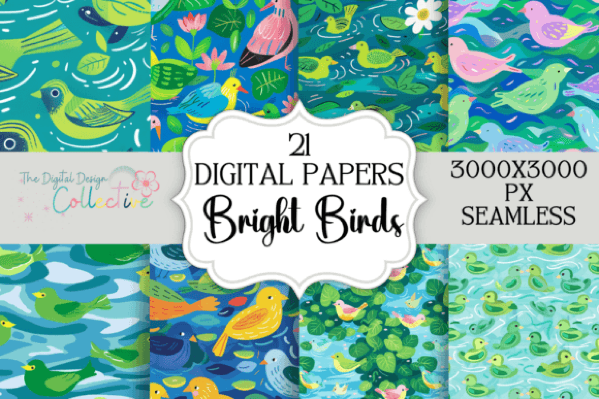 Enhance your creative projects with the Seamless Bright Birds Digital Paper Collection, featuring vibrant bird patterns perfect for scrapbooking, card making, and digital design. Ideal for adding a touch of nature's beauty to your crafts.