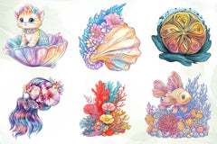 Ocean with this Seashell Mermaid Flower Clipart Bundle, featuring seashell mermaid flowers, perfect for marine fantasy crafts.