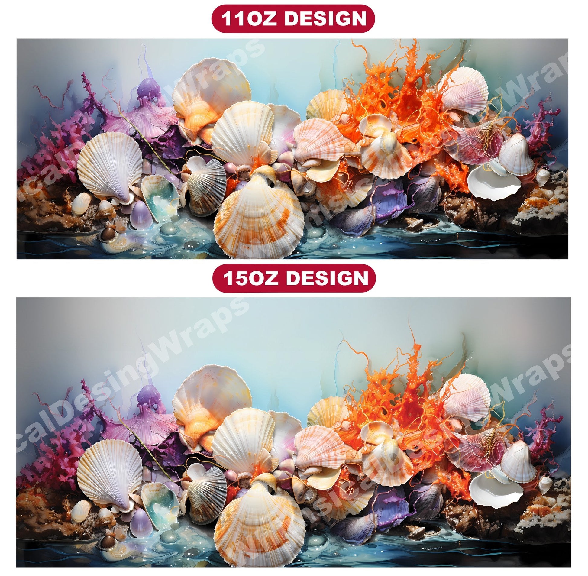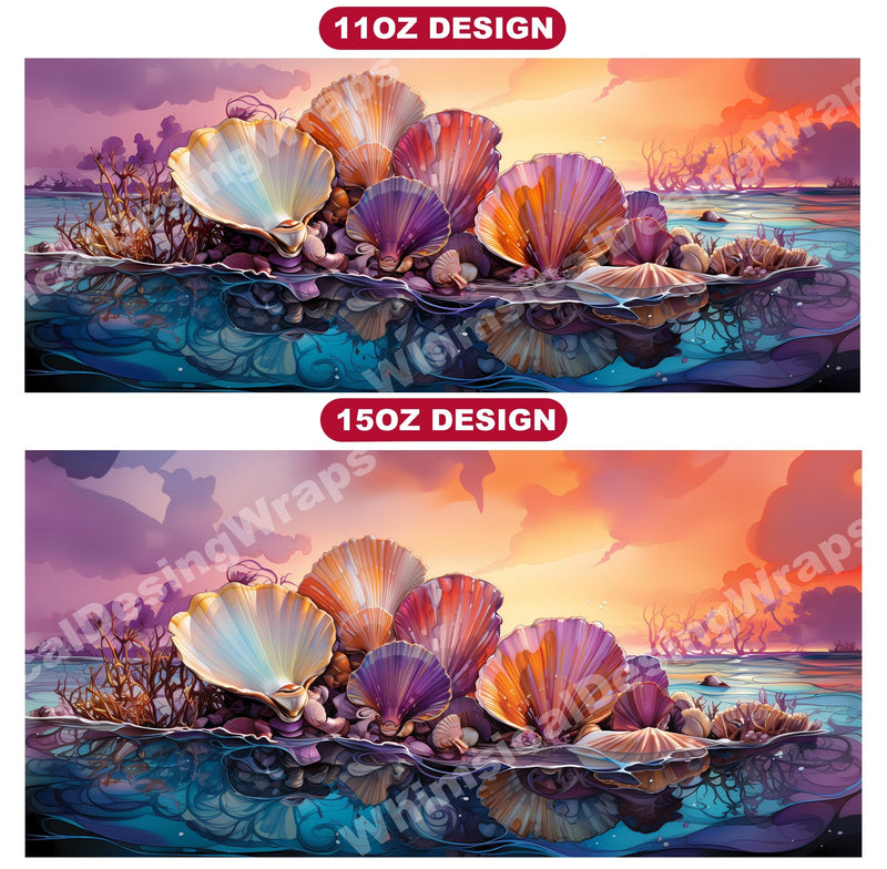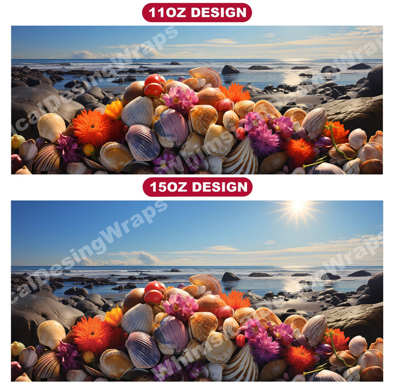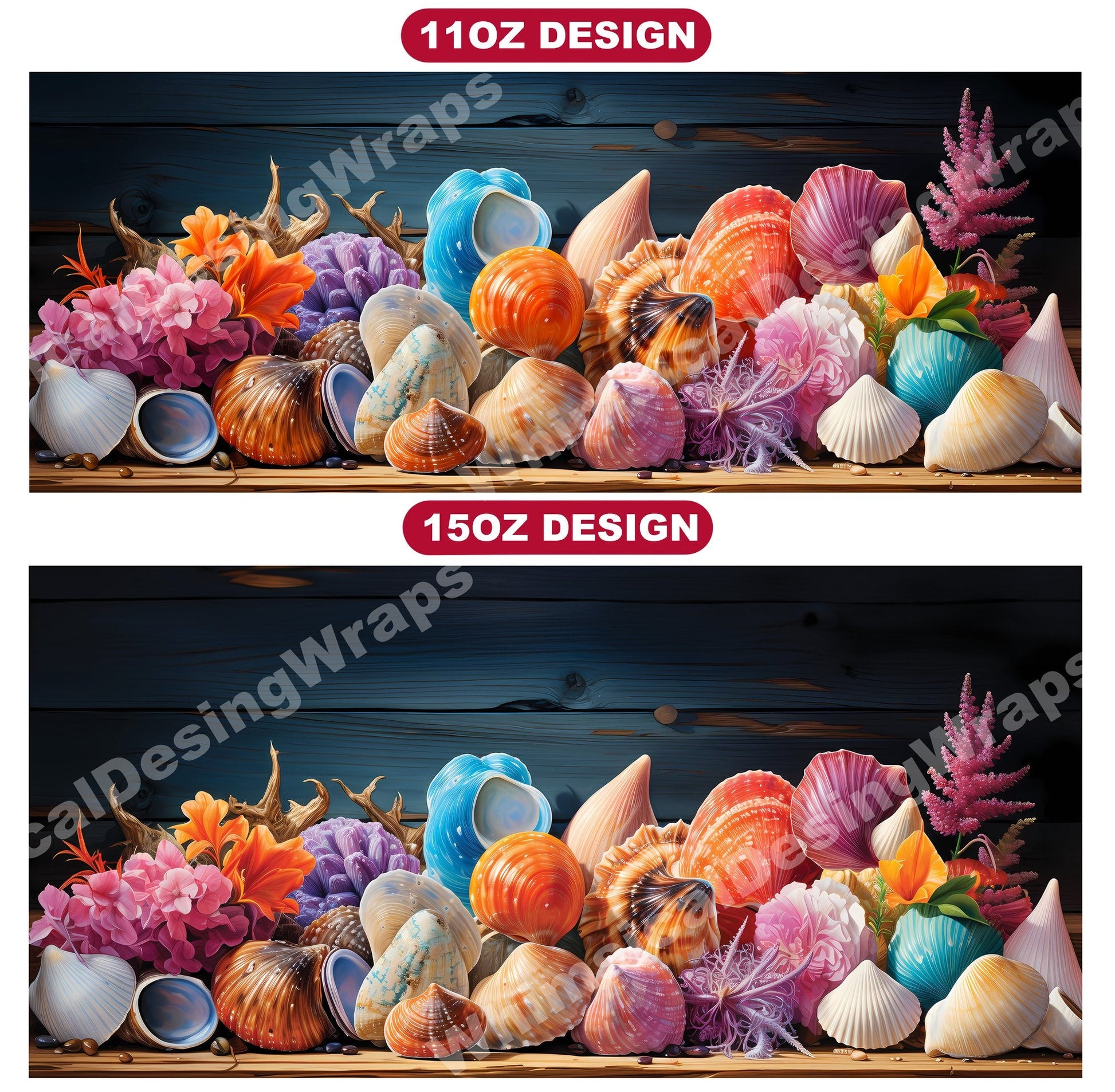 Transport yourself to the shores of a tropical paradise with our seashell digital mug wraps. These serene designs showcase intricate seashell patterns and beach-inspired motifs, bringing a sense of coastal calmness to your morning coffee routine.