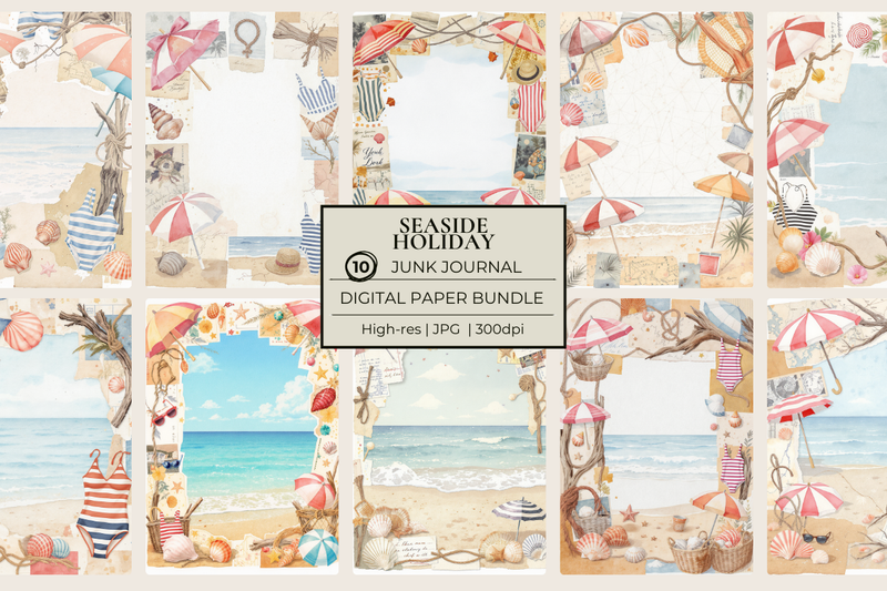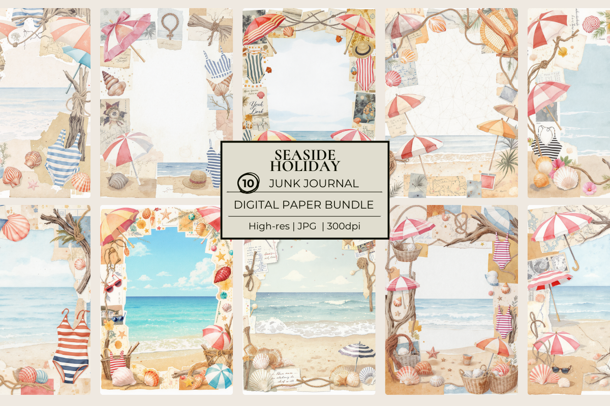 Discover the charm of Seaside Holiday Junk Journal Papers, perfect for crafting unique beach-themed journals. Dive into creativity with these beautifully designed papers, ideal for scrapbooking, card making, and personalized gifts. Capture the essence of coastal adventures with vibrant patterns and textures that inspire. Elevate your projects with this exquisite collection, perfect for both beginners and seasoned crafters. Transform your memories into art with Seaside Holiday Junk Journal Papers, where every page tells a story of sun, sand, and sea.