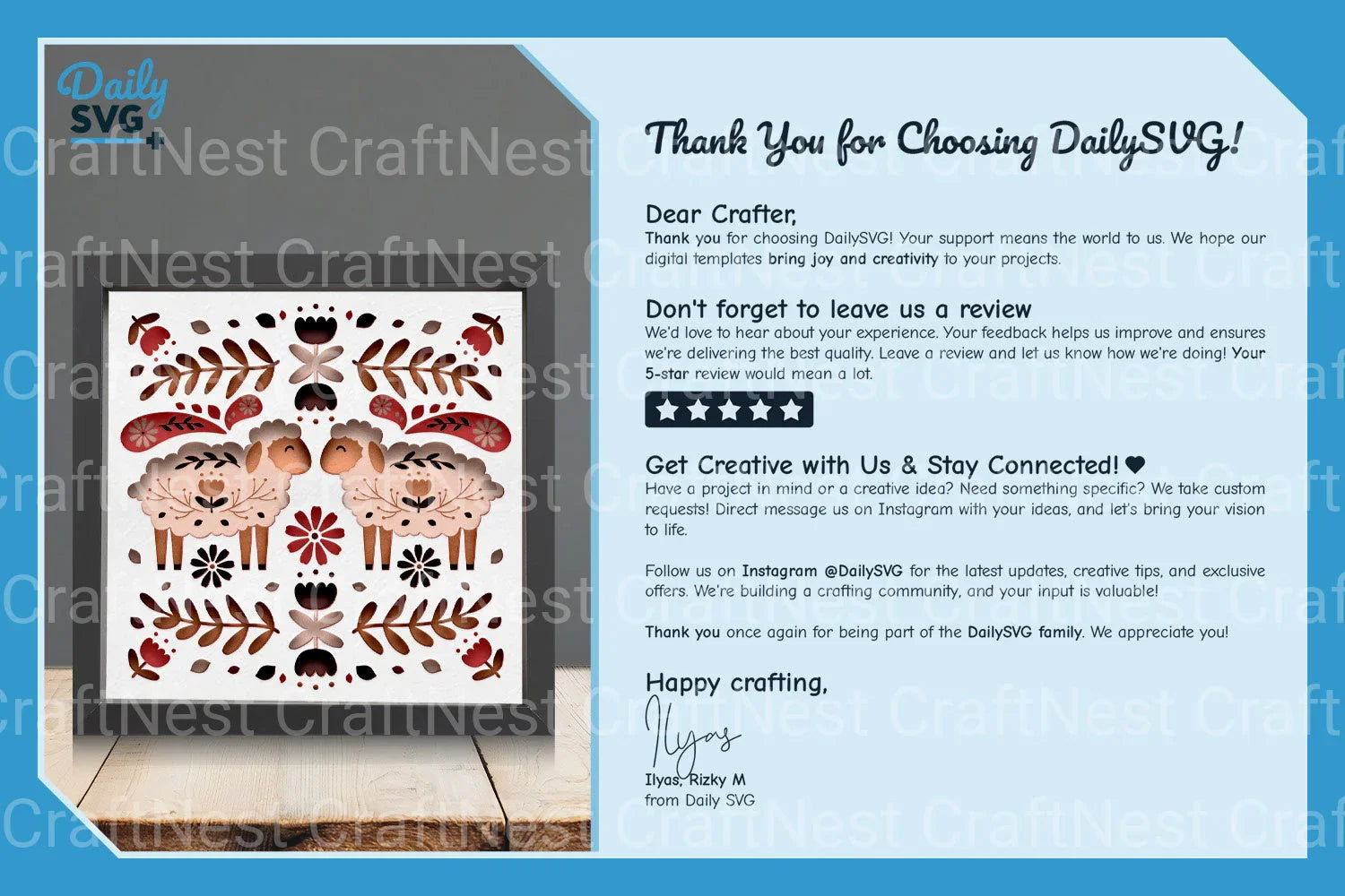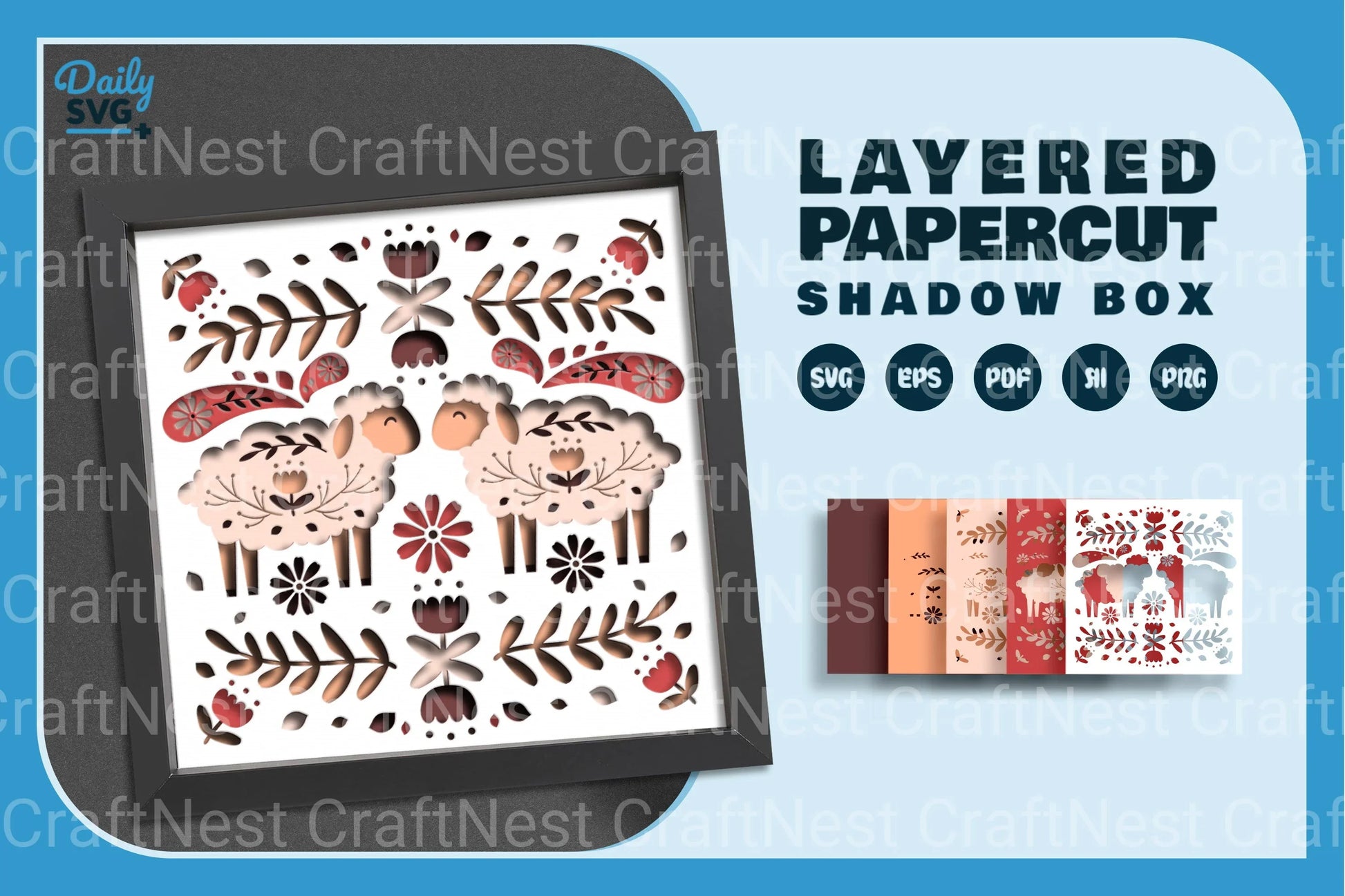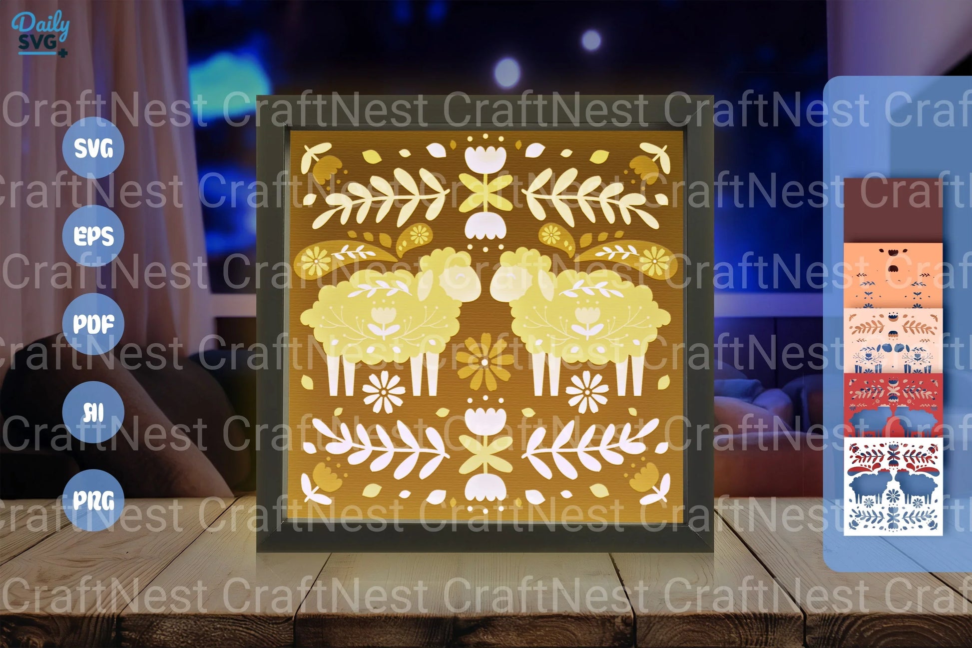 Discover the charm of the Sheep and Flowers Folk Art Papercut SVG Bundle, featuring intricate sheep and floral designs perfect for rustic home decor and creative papercraft projects.