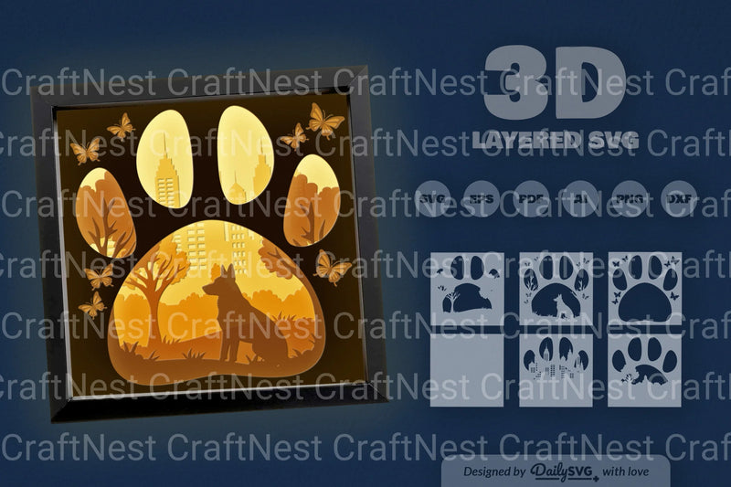 Unleash creativity with the Siberian Husky Papercut SVG Bundle, showcasing a charming dog sitting park design, perfect for unique pet-themed crafts and decor projects.