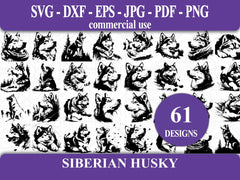 Venture into the wild beauty and adventurous spirit of Siberian Huskies with our captivating collection of SVGs dedicated to this majestic breed. Whether you're a Siberian Husky enthusiast or simply admire their striking appearance and playful personalities, our SVG files capture the essence of Siberian Husky charm in exquisite detail. Let these designs adorn your crafts and creations, adding a touch of canine charisma to everything from apparel to home decor items for Siberian Husky admirers.