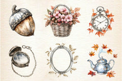 Silver Vintage Aesthetic Autumn Clipart Bundle 2