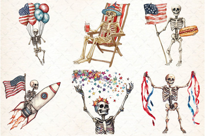 Skeleton 4th of July Clipart Bundle