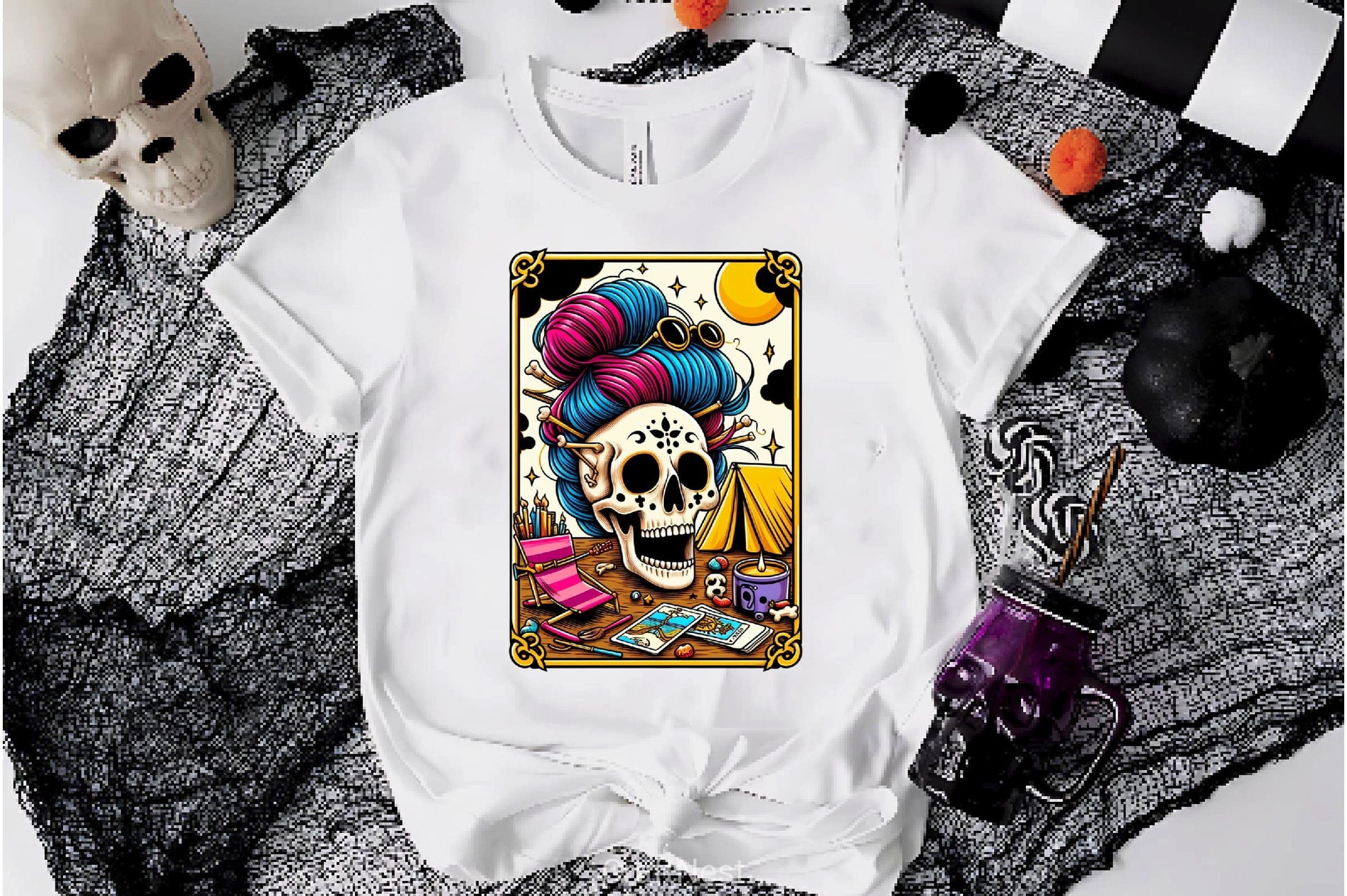 Skeleton Skull Messy Bun Mom Tarot Card Clipart Bundle