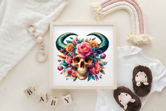 Haunt with this Skull With Horns Clipart Bundle, featuring demonic skull designs, ideal for gothic Halloween crafts.