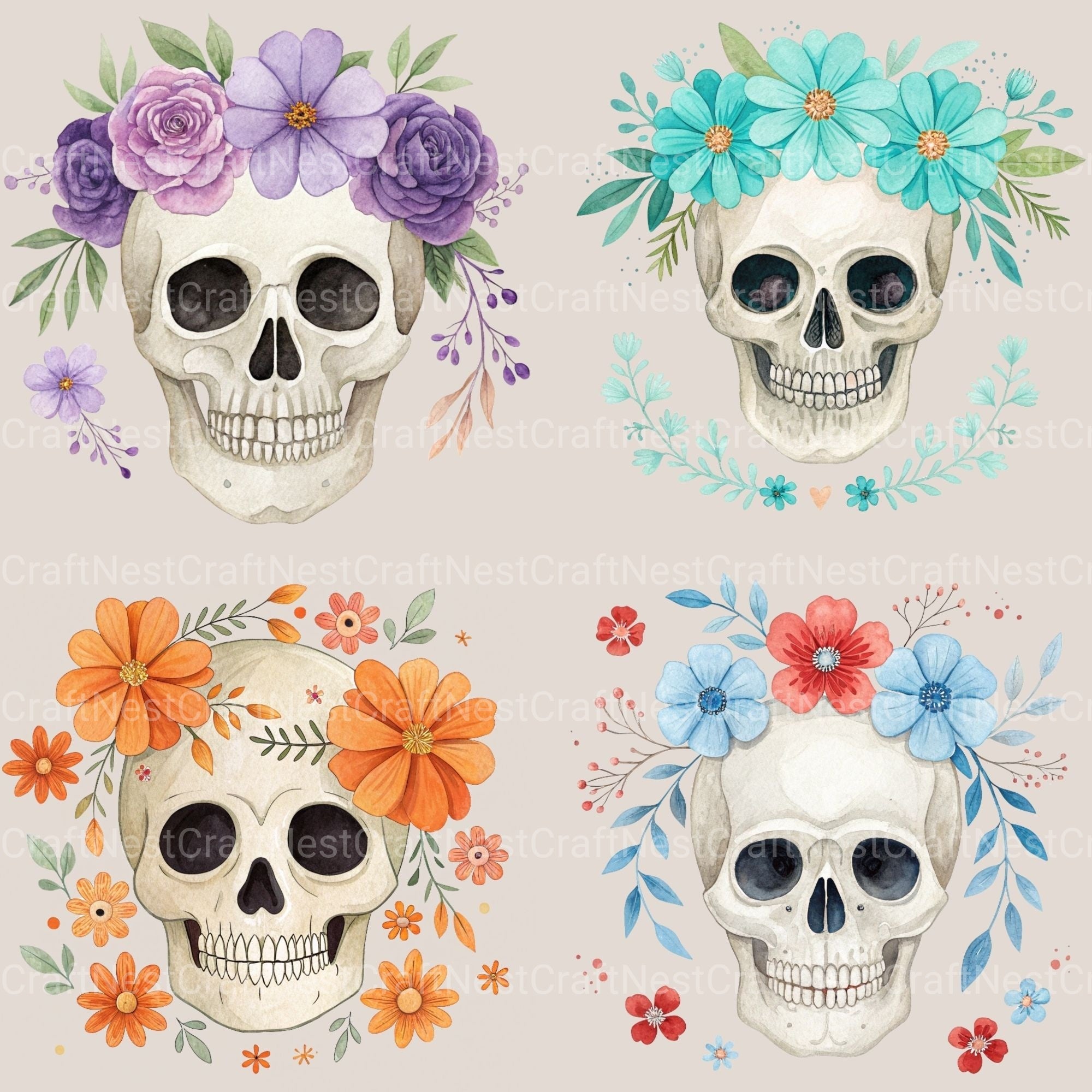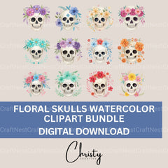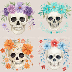 Skulls Floral Clipart Bundle