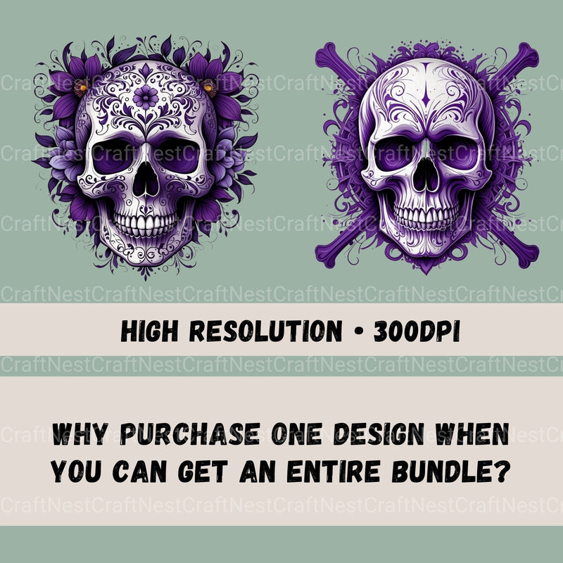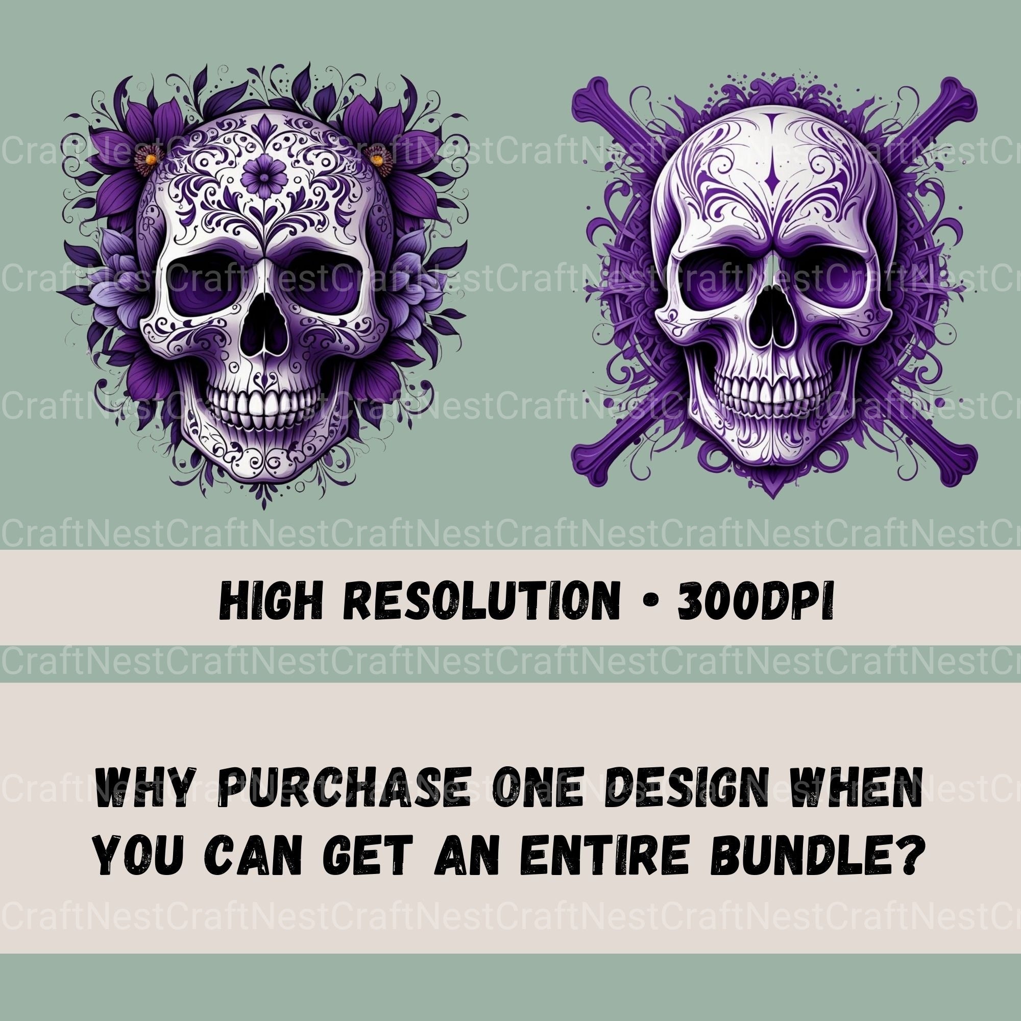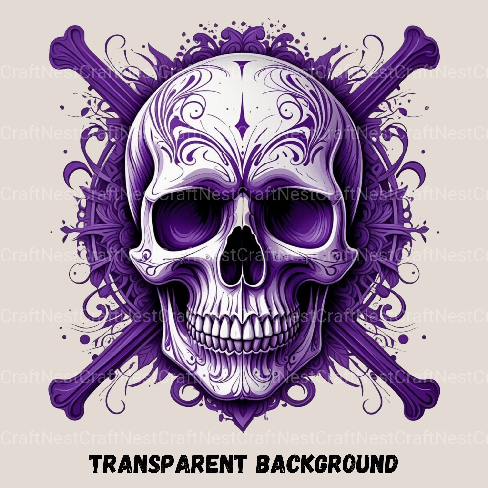 Haunt with this Skulls In Purple 10 Clipart Bundle, featuring mystical purple skull designs, perfect for gothic Halloween crafts.